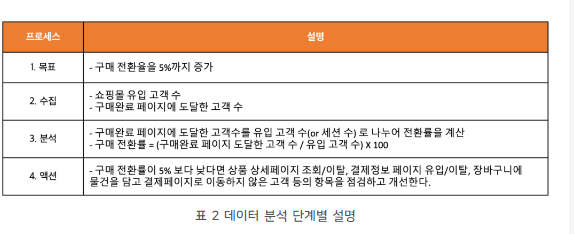 이러한 과정이 반복되면서 "데이터 분석 프레임워크(FrameWork)가 자연스럽게 정의되고 구매 전환률이 조금씩 증가하게 될 것이다. 이것이 바로 = "데이터를 활용한 비즈니스"이다.