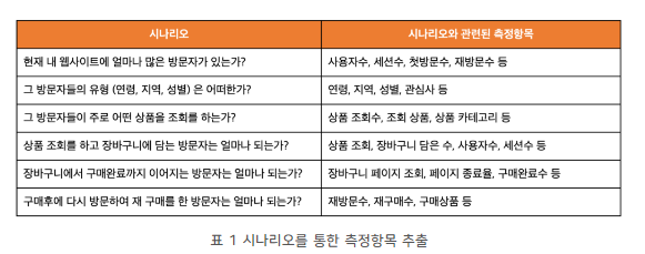 시나리오를 설정하고 그 시나리오에 맞게 측정항목을 정의하여 수집된 데이터를 확인해야한다.